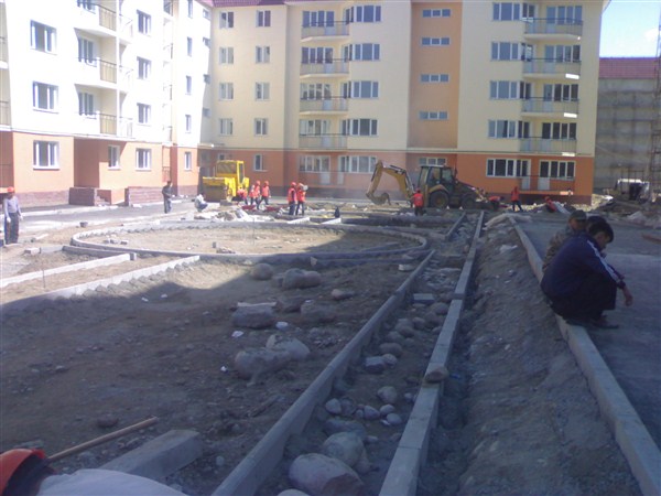 | - установка бортового камня (бордюра) с материалом | 5000тг/м2* |